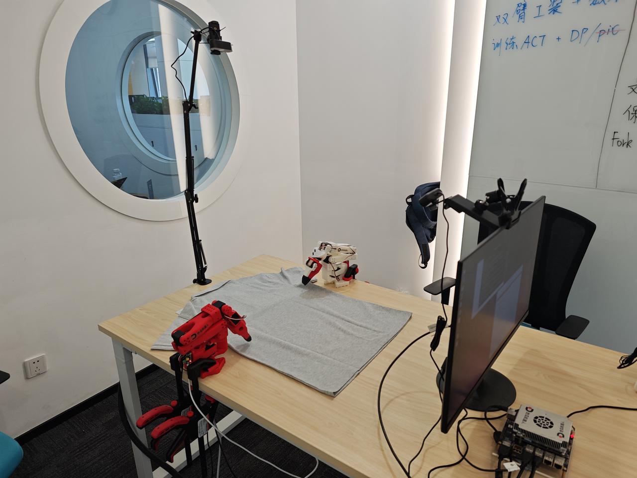 We collected 50 sets of dual-arm cloth folding datasets. You can refer to our HuggingFace repository to decide on your dual-arm setup.