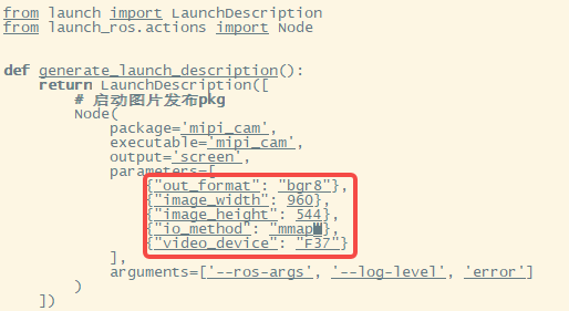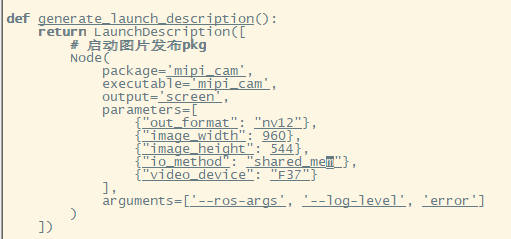 The modified mipi_cam_captur.launch.py file is as follows. The current output image resolution of Hobot Sensor is 960*544, and the selected camera module is F37: