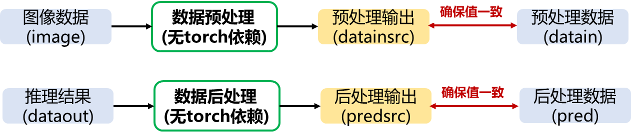 - Pytorch推理存在三个部分:torch模型、基于torch的预处理、基于torch的后处理。