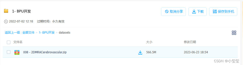 - 数据集来自2022年发表在TMI的论文《Attention-Assisted Adversarial Model for Cerebrovascular Segmentation in 3D TOF-MRA Volumes》。数据集实际上是MRA图像,我这里只保留了脑血管GT,用二分类的Unet来介绍整体的部署流程(这里感谢诺师弟的帮助)。