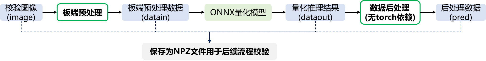 校验③的代码同前面构建流程的最后一步,这里的预处理函数preprocess_onboard与前两个校验所用的函数是不一样的。主体流程如图下图所示,如果校验②有正常结果,校验③无结果,则认为模型在量化阶段除了问题,需要交由技术人员处理。